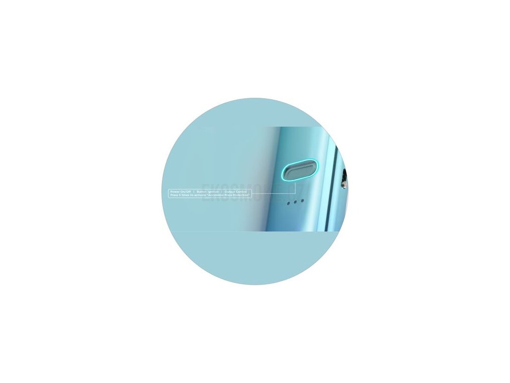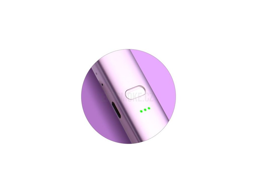 Přímo pod spínacím tlačítkem se nachází tři indikační diody, které slouží pro snadné a rychlé ověření stavu baterie, nebo pro zobrazení možných problémů při vapování. Stav baterie je indikován pomocí tří různých barev, přičemž plně nabitá baterie svítí zeleně, středně nabitá potom modře a téměř vybitá baterie se hlásí červenými diodami. Díky této přehledné indikaci vám již nic neunikne.