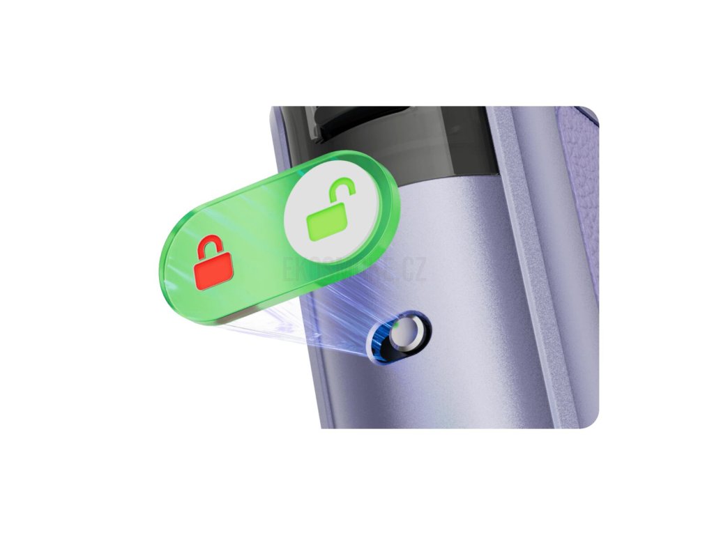 Zajistěte si spínací tlačítko prostřednictvím praktického manuálního zámku v boční části těla e-cigarety. Jedním pohybem prstu tak celou e-cigaretu odemknete nebo uzamknete a můžete si ji pohodlně vzít kamkoliv s sebou, nebo si ji jednoduše uložit do přenosného zavazadla. Praktický doplněk usnadní každodenní využití.