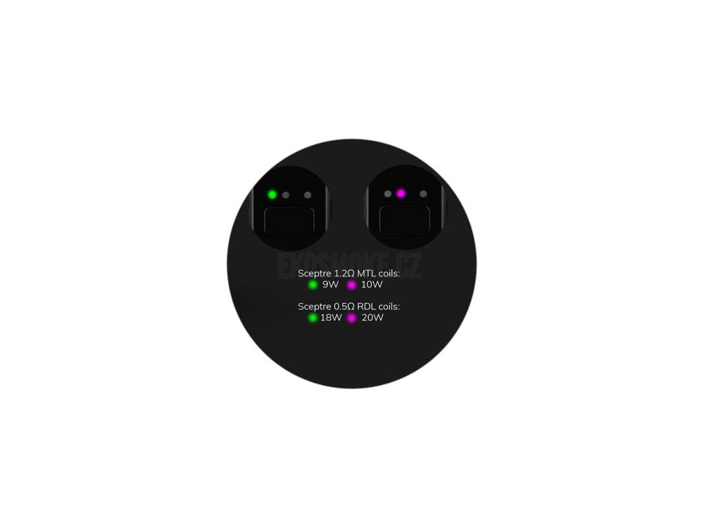 Samotná e-cigareta nabídne hned dvě varianty potahování. K dispozici je standardní spínání potahu pomocí spínacího tlačítka. Můžete však také využít volbu automatického spínání pouhým potažením z náustku. Z výstupních režimů jsou na výběr dva režimy výkonu Normal a Boost. E-cigareta Innokin Sceptre pracuje s výstupním výkonem v rozmezí 9 - 20 W. Ve vrchní části se nachází cartridge s objemem 3 ml a možností regulace airflow. Je kompatibilní se žhavícími tělísky Innokin Sceptre. V balení se nachází hned dvě. První z nich disponuje odporem 1,2 ohm a je vhodné pro utaženější MTL potah. Druhé tělísko nabídne odpor 0,5 ohm a je vhodné pro vzdušnější MTL a utažené DL. Innokin Sceptre Pod Kit je výborná e-cigareta, která dokáže oslovit téměř každého vapera.