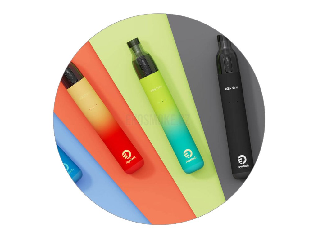 Joyetech eGo Nano Pod Kit pokračuje v zaběhnuté tradici zařízení modelové série eGo a představuje se opět v trubkovém pen-style těle s kompaktními rozměry a moderními cartridgemi. Délka celé e-cigarety činí jen 113.4 mm a průměr se zastavil na krásných 17.5 mm. Vše potom umocní výběr odvážných barevných variant a speciální soft-touch povrchová úprava pro co nejkomfortnější držení v ruce.