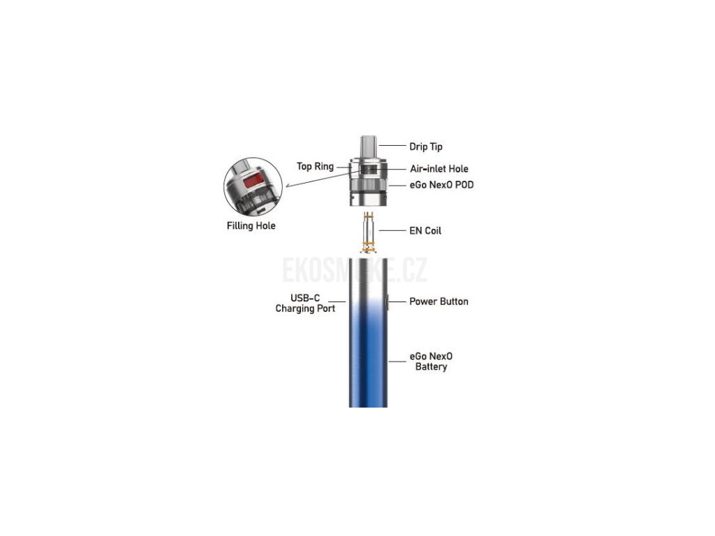 eGo NexO je nová řada elektronických cigaret s POD systémem od společnosti Joyetech, která je vybavena 1500mAh monočlánkem a cartridgí o objemu 2ml s uživatelsky přívětivým 360 stupňovým oknem pro kontrolu stavu liquidu. Zařízení dále disponuje automatickým výkonem až 20W, LED indikátorem stavu nabití baterie, USB-C portem pro rychlé nabití a vyměnitelnými atomizery řady EN.
