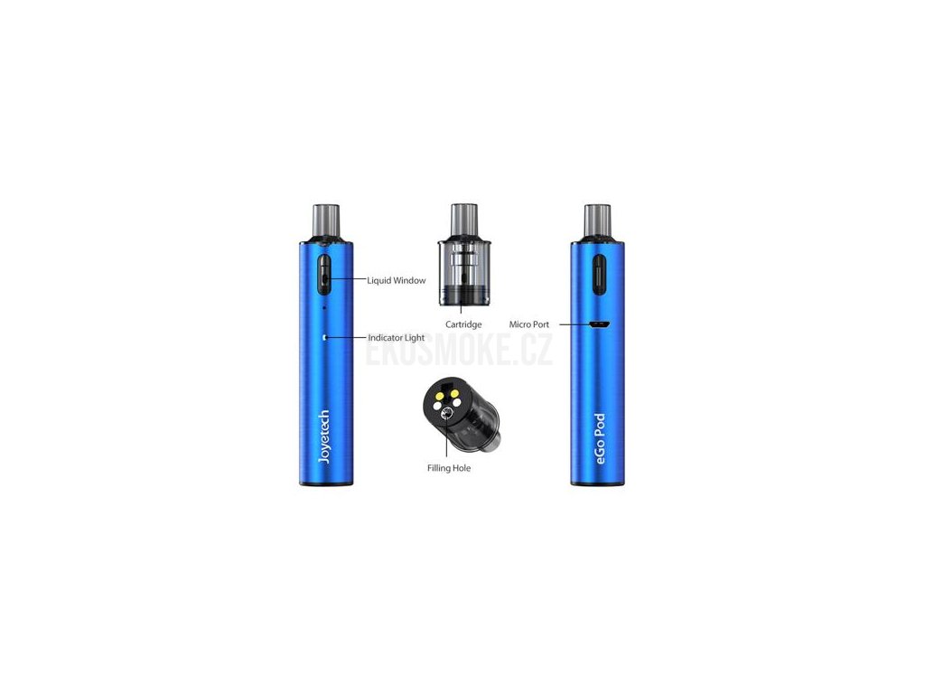 Oblíbili jste si jednoduchost elektronických cigaret ze série Joyetech eGo AIO? Výrobce Joyetech přichází s novinkou v podobě modelu Joyetech eGo Pod Kit, která je ještě jednodušší, než její předchůdci. Jedná se o kompaktní e-cigaretu typu pod, kterou tvoří samotné tělo baterie a cartridge. Je tak vhodná zejména pro začátečníky a nenáročné uživatele. Tělo je vyrobeno z nerezové oceli a délka celé e-cigarety činí jen 98 mm. Průměr se zastavil na 19 mm. Díky těmto rozměrům ji snadno schováte do kapsy a pohodlně se přenáší. Nabídne tradiční trubkovou konstrukci pro pohodlné vapování. V těle se nachází integrovaná baterie s kapacitou 1000 mAh, která zajistí bezproblémový chod s téměř celodenní výdrží. V případě potřeby dobití pak jednoduše připojíte microUSB kabel z balení a baterii kdykoliv dobijete. Nespornou výhodou je potom přítomnost automatického spínače žhavení.