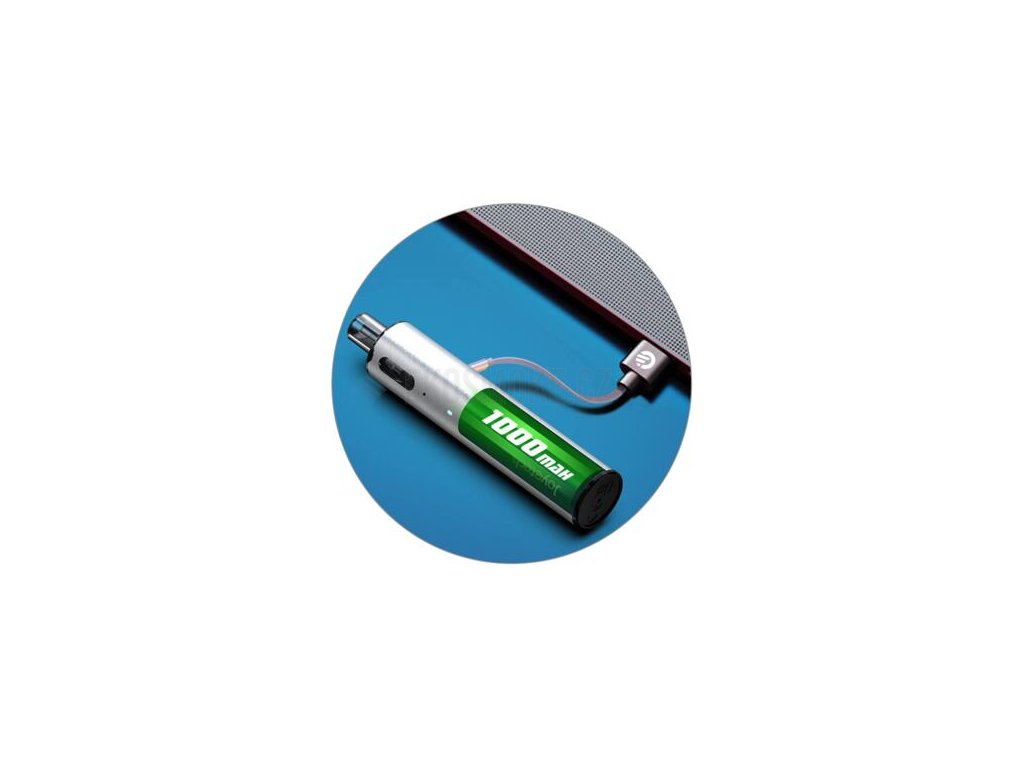 Uvnitř těla se nachází integrovaná baterie s obrovskou kapacitou 1000 mAh. Ta si poradí s mnohahodinovou výdrží a u slabších vaperů s vapováním po celý den. Samozřejmostí je přítomnost celé řady bezpečnostních ochran baterie. V případě potřeby dobití pak jednoduše připojíte microUSB kabel z balení a baterii kdykoliv dobijete.