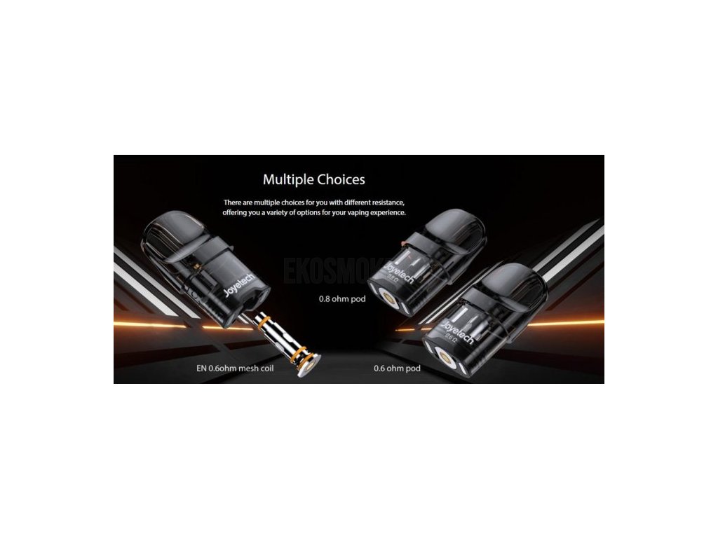 Joyetech EVIO Grip je stylový a vysoce kvalitní Pod systém, který je vhodný jak pro úplné začátečníky, tak i pro zkušené vapery. Futuristický design těla baterie obsahuje monočlánek o kapacitě 1000mAh, LED indikátor stavu nabití, automatický výkon až 20W, inovativní regulaci přívodu vzduchu a rychlé nabíjení pomocí USB-C portu. Vyměnitelná cartridge (POD) s vestavěným atomizerem o odporu 0,6ohm a 0,8ohm pojme až 2,8ml liquidu. K dispozici je také cartridge s vyměnitelným atomizerem řady EN.