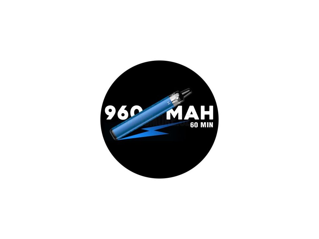 V kompaktním těle e-cigarety EVIO Pod se ukrývá integrovaná baterie s obrovskou kapacitou 960 mAh, která si hravě poradí s intenzivním vapingem po dobu mnoha hodin. V případě potřeby pak budete moci baterii kdykoliv dobít pomocí portu USB-C. Lze dobíjet proudem až 1A, do plné kapacity se potom zvládne baterie dobít už za 60 minut.