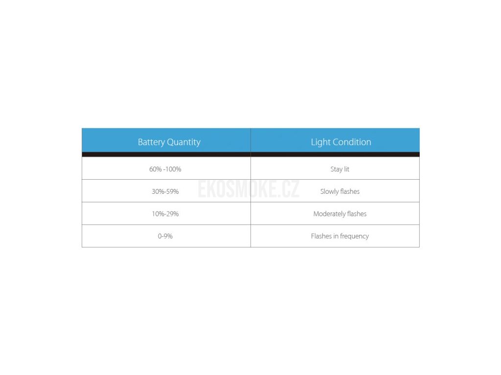 2 Mody: Přímé napětí - automaticky upravuje výkon cigarety na základě stavu nabití baterie