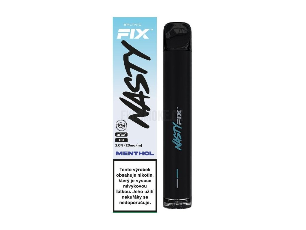 Osvěžující chuť mentolu... Nasty Juice Air Fix je vyladěná jednorázová elektronická cigareta s liquidem SALT od věhlasného výrobce e-liquidů Nasty Juice z Malajsie. Tělo baterie disponuje integrovaným monočlánkem o kapacitě 700mAh, který Vám umožní až 675 potažení z cartridge o objemu 2ml (až dvojnásobek potažení oproti původní verzi). Spodní část zařízení disponuje regulací přívodu vzduchu pro optimální nastavení kouřivosti. Je vhodná především pro ty, kteří si chtějí elektronickou cigaretu vyzkoušet bez velkých investic. Je ideální řešení pro kuřáky, kteří potřebují jednorázově překlenout pobyt v nekuřáckém prostředí – v kanceláři, autobusu, letadle, kině, restauraci apod. Jelikož se jedná o jednorázový výrobek, nevztahují se na něj reklamační podmínky. Liquidy SALT se od běžných liquidů odlišují tím, že mají nižší PH a obsahují stále více oblíbenou a žádanou nikotinovou sůl, díky které dochází k rychlejší a kvalitnější vstřebatelnosti = bez dráždivého pocitu v krku oproti klasickým liquidům. V přírodě se tato sůl volně vyskytuje v tabákových listech.....díky tomu tyto liquidy obsahují přirozenou formu nikotinu, který je pro tělo lépe vstřebatelný a nezkresluje chuť liquidu. Velkou výhodou je rychlejší proces odpařování (nikotinová sůl se odpařuje při nižších teplotách) a daleko lepší vstřebatelnost, díky které je intenzita vapování nižší, takže spotřeba těchto liquidů s nikotinovou solí je nižší, než u klasických liquidů na stejném zařízení. Také se tím prodlužuje životnost žhavících hlav a snižuje spotřeba baterie. Tyto liquidy jsou velmi vhodné pro kuřáky, kteří přecházejí z klasických cigaret na elektronické, kdy je nutné, aby nový e-kuřák dostal do těla dostatečné množství nikotinu, bez jakéhokoli dráždivého pocitu (škrábání, kašlání).