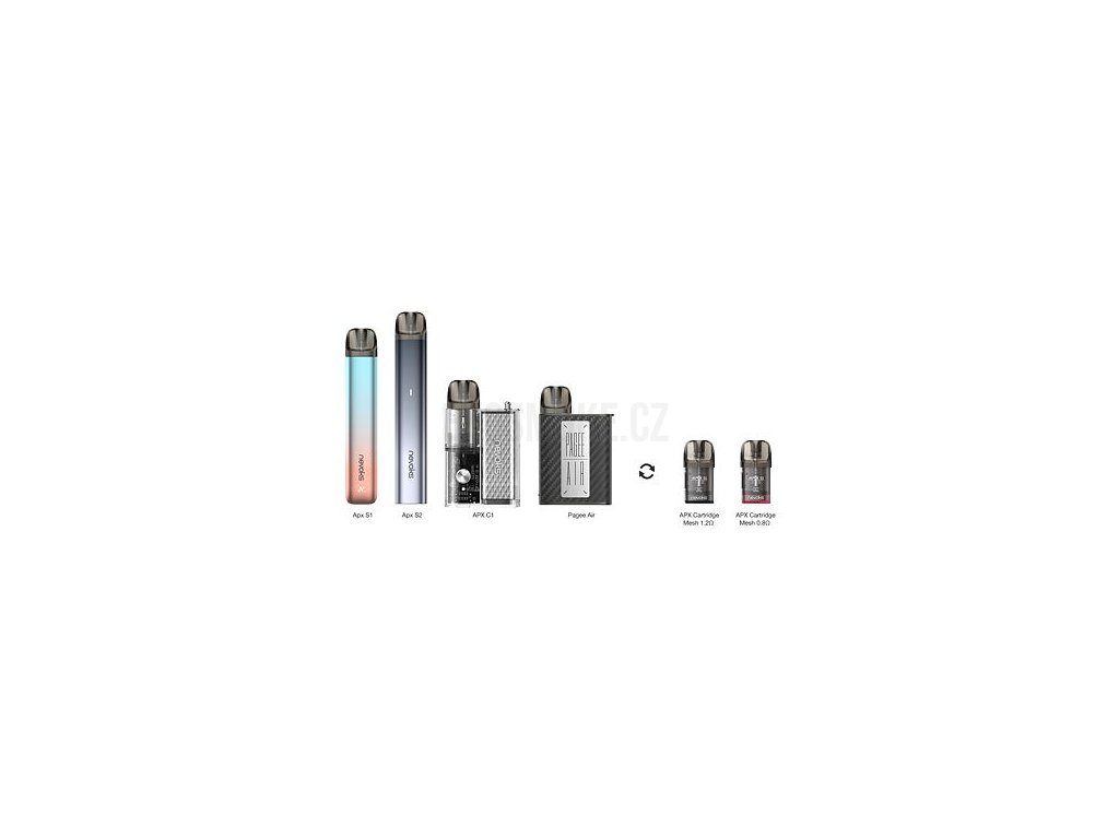 Výrobce vylepšil své cartridge APX Mesh, které nově přináší ještě delší životnost a ještě výraznější chuť při každém potahu. V základním balení najdete cartridge APX Mesh s odporem 0,8 ohm pro optimální MTL potah a pro zisk co nejvýraznější chuti. Alternativně si můžete k modelu zakoupit samostatně také cartridge s odporem 1,2 ohm pro zprostředkování tuhého MTL potahu.