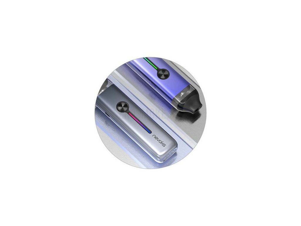 Nevoks Feelin 2 Pod Kit je špičkový pod systém s nádherným designovým zpracováním, podporou hlav z platformy Nevoks SPL 10 a několika zajímavými funkcemi, díky čemuž dokáže oslovit drtivou většinu vaperů. Konstrukce zařízení z hliníkové slitiny přináší nízkou hmotnost 45 g a zaoblené hrany s praktickými rozměry celého těla 105 x 25 x 15 mm. Díky svému tvaru se perfektně drží v dlani a používání si tak budete doslova užívat. Její tělo je poháněno integrovanou baterií se solidní kapacitou 1100 mAh, která hravě zvládne také intenzivnější používání a vyšší výkon. Na předním panelu se nachází přehledný LED indikační pásek, který vás bude neustále informovat o aktuálním stavu baterie a zároveň dodá e-cigaretě futuristické vzezření. Baterii je možné dobíjet prostřednictvím portu USB-C s podporou nabíjení až 2A.