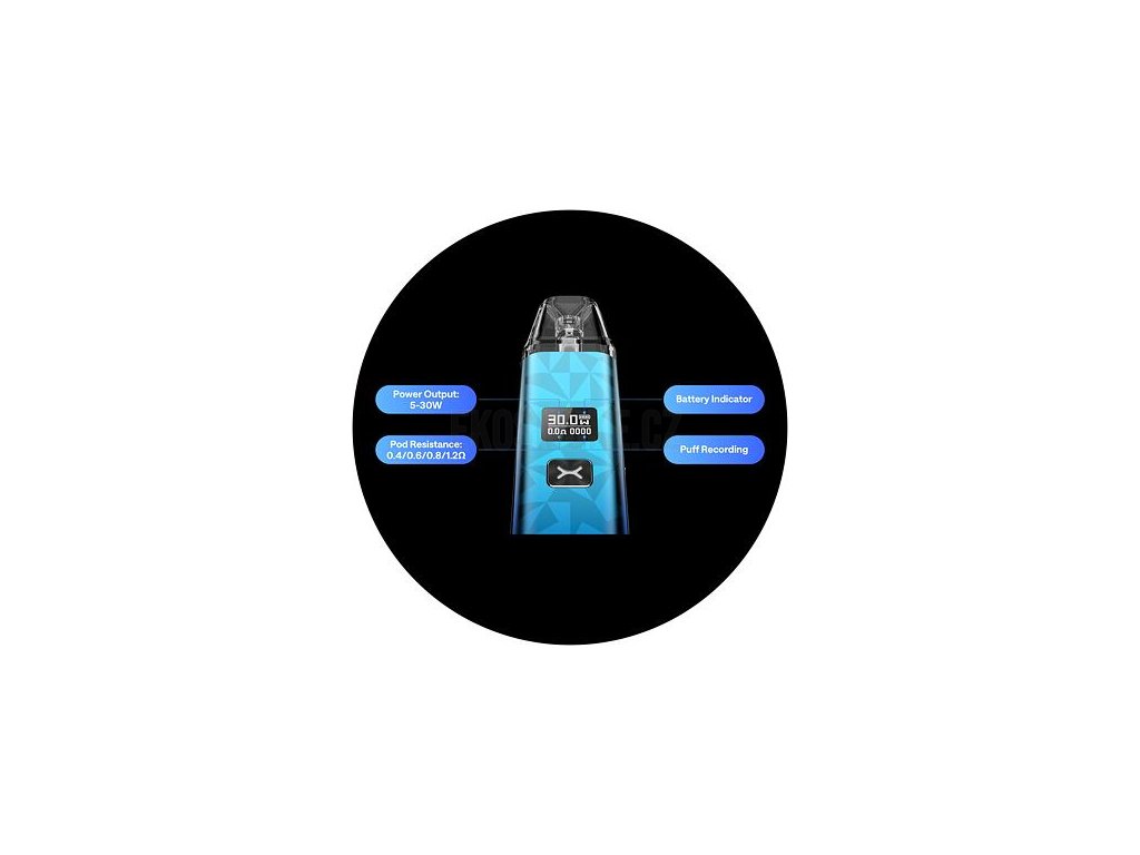 * Zařízení disponuje funkcí inteligentní detekce odporu, po připojení cartridge omezí nastavitelný rozsah výkonu podle odporu připojené cartridge. Výkon 30W lze používat s cartridgí Xlim V3 0.4Ω, která není součástí základního balení.