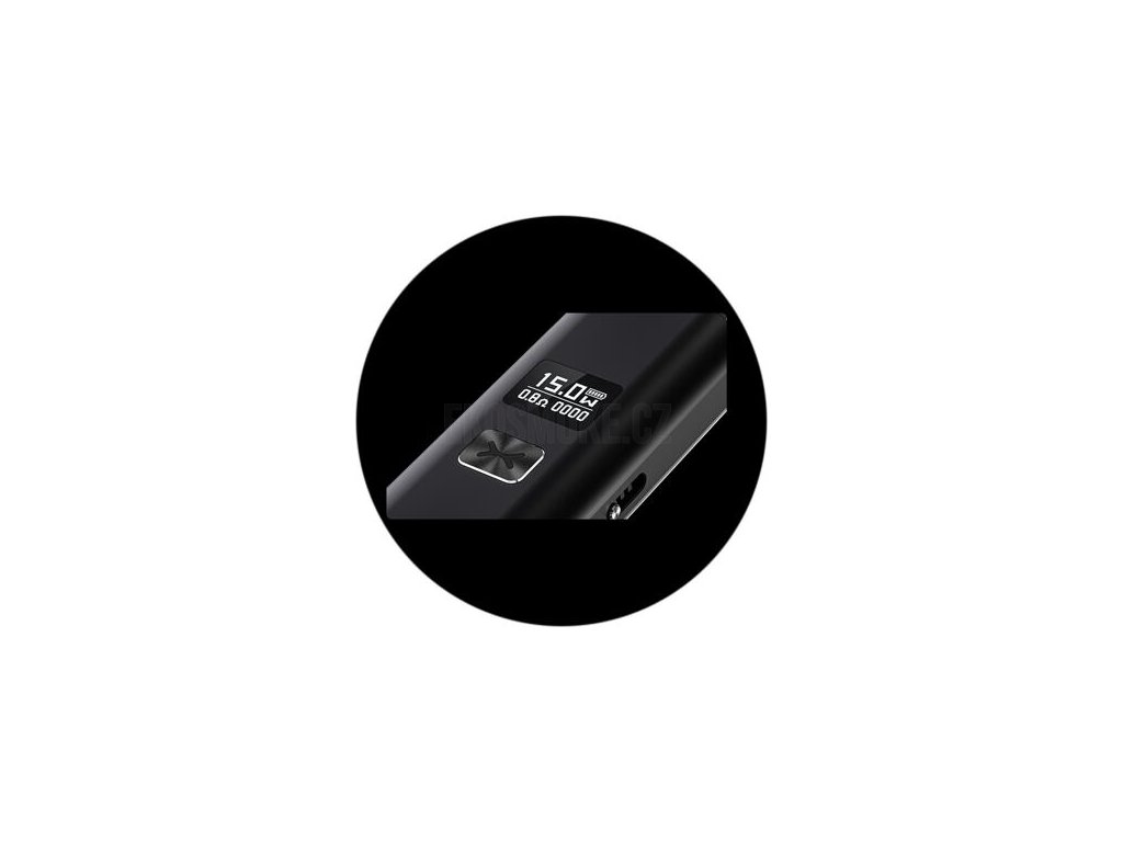 V přední části e-cigarety se nachází přehledný OLED displej, díky kterému budete mít neustálý přehled o aktuálně nastaveném výkonu, naměřeném odporu spirálky, počtu potahů a stavu baterie. Výkon je možné regulovat v rozmezí 5 - 25 W pomocí velkého spínacího tlačítka umístěného pod displejem. Ovládání je nesmírně intuitivní a osvojíte si ho již během pár minut.
