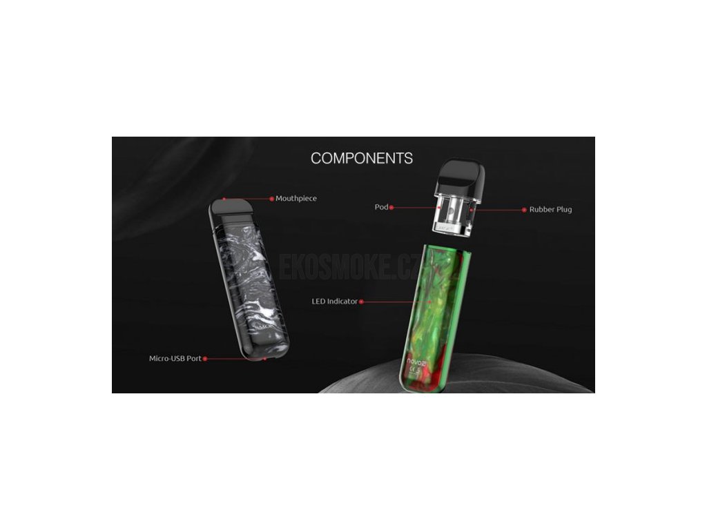 Elektronická cigareta Smoktech NOVO patří mezi nejžádanější přístroje pro vaping s POD systémem a proto není divu, že výrobce přichystal její druhé pokračování. Moderní designe těla baterie ukrývá vestavěný monočlánek o kapacitě 800mAh s automatickým spínačem, LED indikátorem stavu nabití a maximálním výkonem až 25W. Inovativní cartridge (POD) o objemu 2ml je přizpůsobena pro pohodlné vapování a nabízí nové modely vestavěných žhavicích hlav NOVO 2 Mesh o odporu 1ohm a NOVO 2 DC MTL o odporu 1,4ohm. Společně s bočními drážkami pro přívod vzduchu ke spirálce přináší NOVO 2 více páry a chuti než je k tomu u konkurenčních výrobků. Nabíjení zajišťuje micro USB vstup. Novo disponuje osmivteřinovou kontrolou potahů, ochranou proti zkratu, přehřátí a vybití.