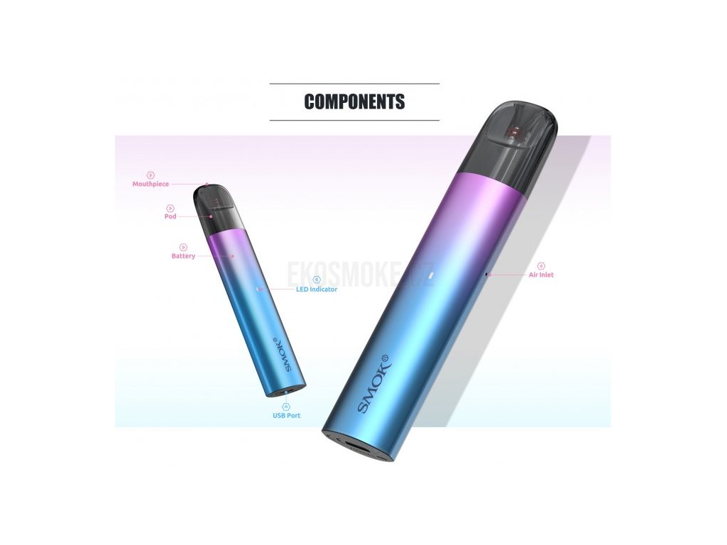 Není určeno pro náplně obsahující nikotin! Smoktech SOLUS je ideální elektronická cigareta s POD systémem ve stylu ,,Pocket´´(kapesní velikost). Vyměnitelná cartridge (POD) z PCTG materiálu je vybavena žhavící hlavou Meshed o odporu 0,9ohm a pojme až 3ml liquidu. Díky magnetickému propojení s baterií lze cartridge jednoduše vyjmout a doplnit oblíbeným liquidem. Kvalitní hliníková konstrukce těla baterie disponuje vestavěným monočlánkem o kapacitě 700mAh, LED indikátorem stavu nabití, automatickým spínačem a bočním přívodem vzduchu. Tato inovace je vhodná pro kouření ve stylu MTL, tedy klasického šlukování pusa-plíce... Více info v detailním popisu