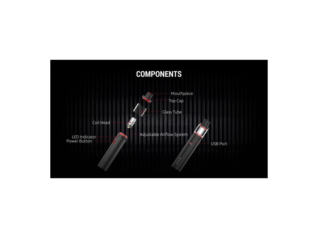 Není určeno pro náplně obsahující nikotin! Elektronické cigarety Vape Pen od Smoktechu přicházejí s verzí V2, kterou si oblíbí jak zkušení uživatelé, tak i úplní začátečníci, a to díky jednoduché obsluze s automatickým výkonem až 60W (výkon je nastavován automaticky v závislosti na zvoleném odporu atomizeru). Ergonomické tělo baterie disponuje kapacitou 1600mAh, LED indikátorem stavu nabití a důmyslným vyváženým přívodem vzduchu pro dokonalou chuť liquidu a optimální kouřivost. Baterie je opatřena speciálním závitem pro clearomizer, který lze jednoduše odšroubovat a vyměnit žhavicí hlavu řady Vape Pen. Používá systém horního plnění - po odšroubování vrchní části plníte liquid přímo do těla nádržky o objemu 3ml. Boční přívod vzduchu zajišťuje velkou tvorbu páry. Mezi její další přednosti patří ochrana proti zkratu a přehřátí, nízkému odporu a 8-mi vteřinová ochrana žhavení.