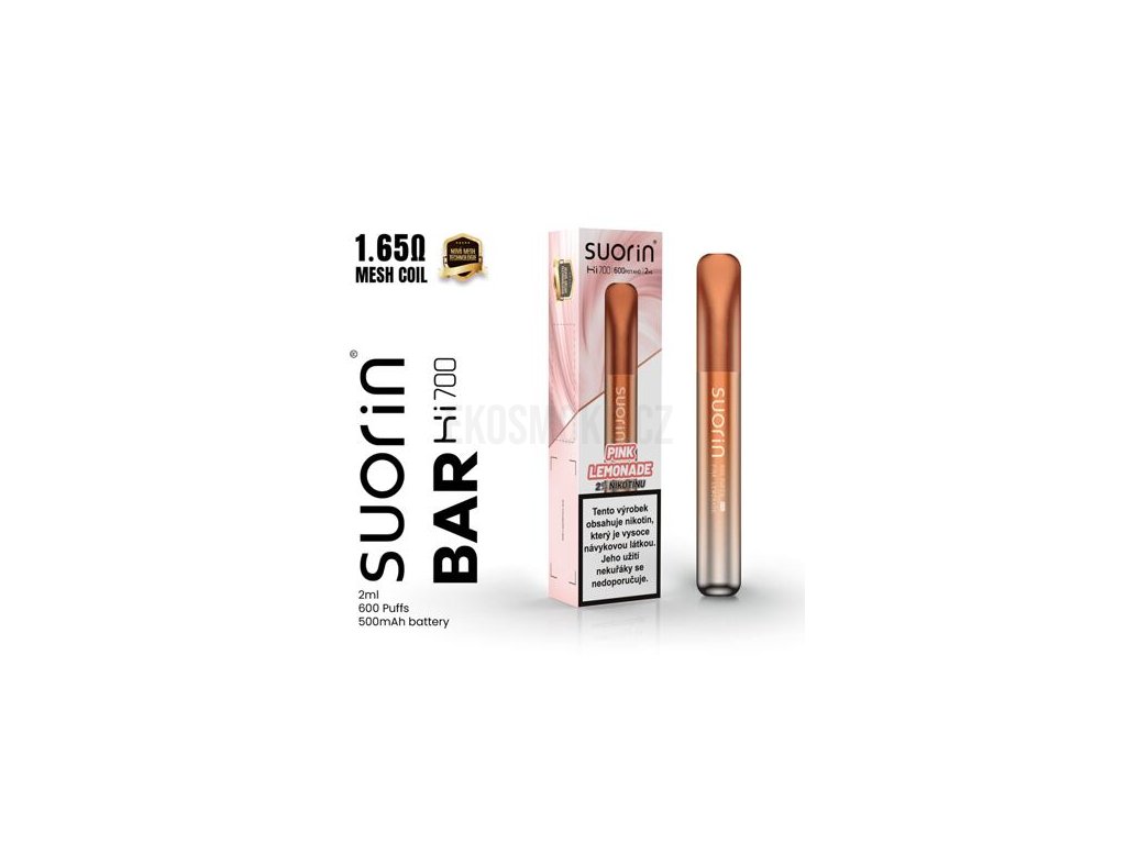 Suorin Bar Hi700 Disposable Pod (Pink Lemonade) intenzita nikotinu 20mg tabáková nálepka Kolek Q