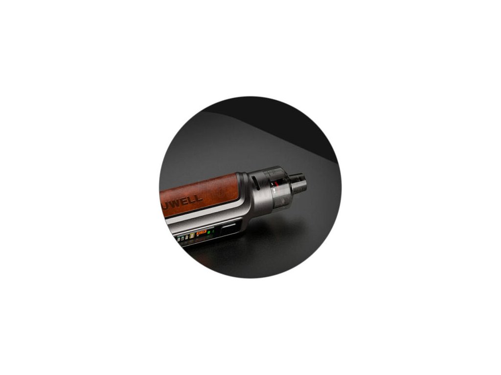 Uwell Aeglos P1 Mod Pod Kit je pokročilejší verzí populární e-cigarety Aeglos. Přináší přehledné uživatelské rozhraní, slot pro vlastní externí baterii, ještě ergonomičtější design a vyšší výstupní výkon. Ergonomická konstrukce těla s rozměry 122 x 29 x 34 mm kombinuje hned několik materiálů pro co nejpříjemnější používání a pohodlné držení v ruce. Tělo je vyrobeno ze zinkové a hliníkové slitiny, kterou doplňuje kožený potah v zadní části a PCTG cartridge. Odklopením zadního krytu objevíte slot pro baterii 18650. Nespornou výhodou zařízení na externí baterii je vyšší výstupní výkon, u e-cigarety Uwell Aeglos P1 Mod Pod můžete regulovat výkon v rozmezí 5 - 80 W, čímž uspokojí i náročnější příznivce přímého potahování do plic. Nesmí chybět prvotřídní elektronika s řadou bezpečnostních ochran a přehledné uživatelské rozhraní pro snadné nastavení a rychlou orientaci v ovládacích prvcích.