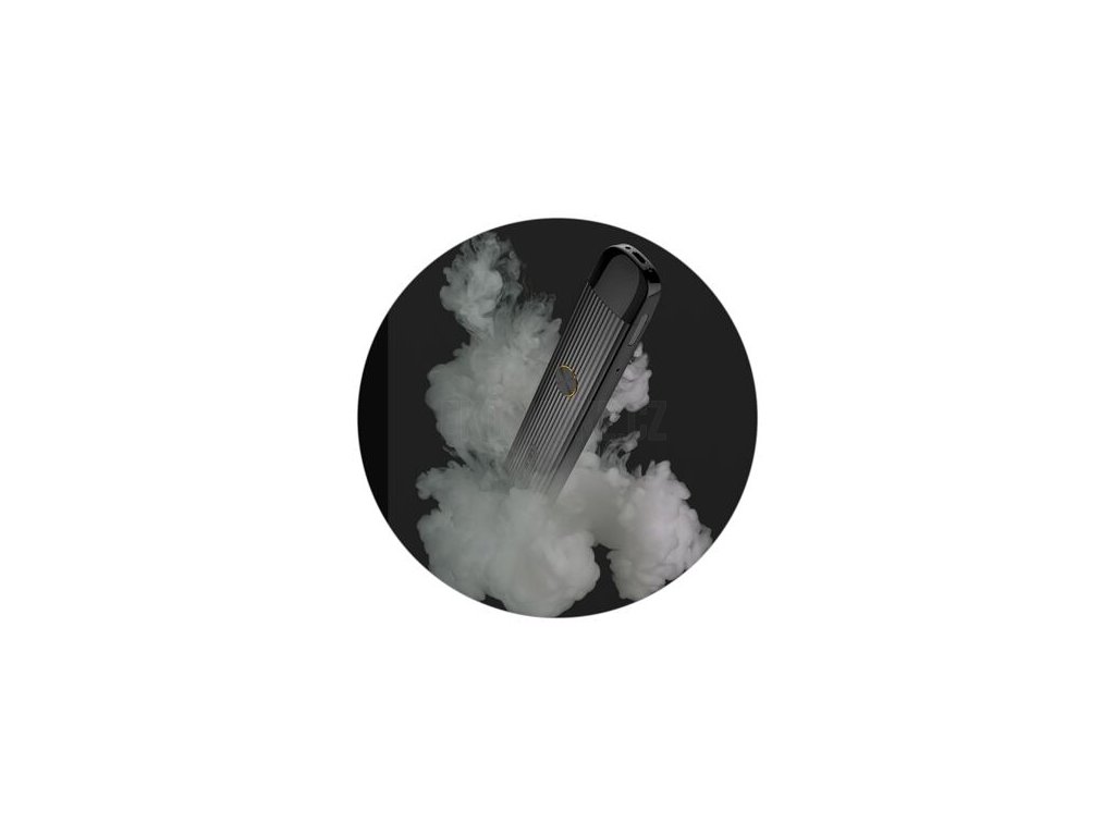 Ve vrchní části e-cigarety se nachází praktický a inovativní systém airflow. Cartridge můžete nasadit na tělo baterie hned ve dvou směrech, přičemž toto nasazení ovlivní výslednou tuhost potahu. Z jedné strany tak získáte příjemně utažené MTL, z druhé strany vzdušnější potah, který se přibližuje utaženému DL.