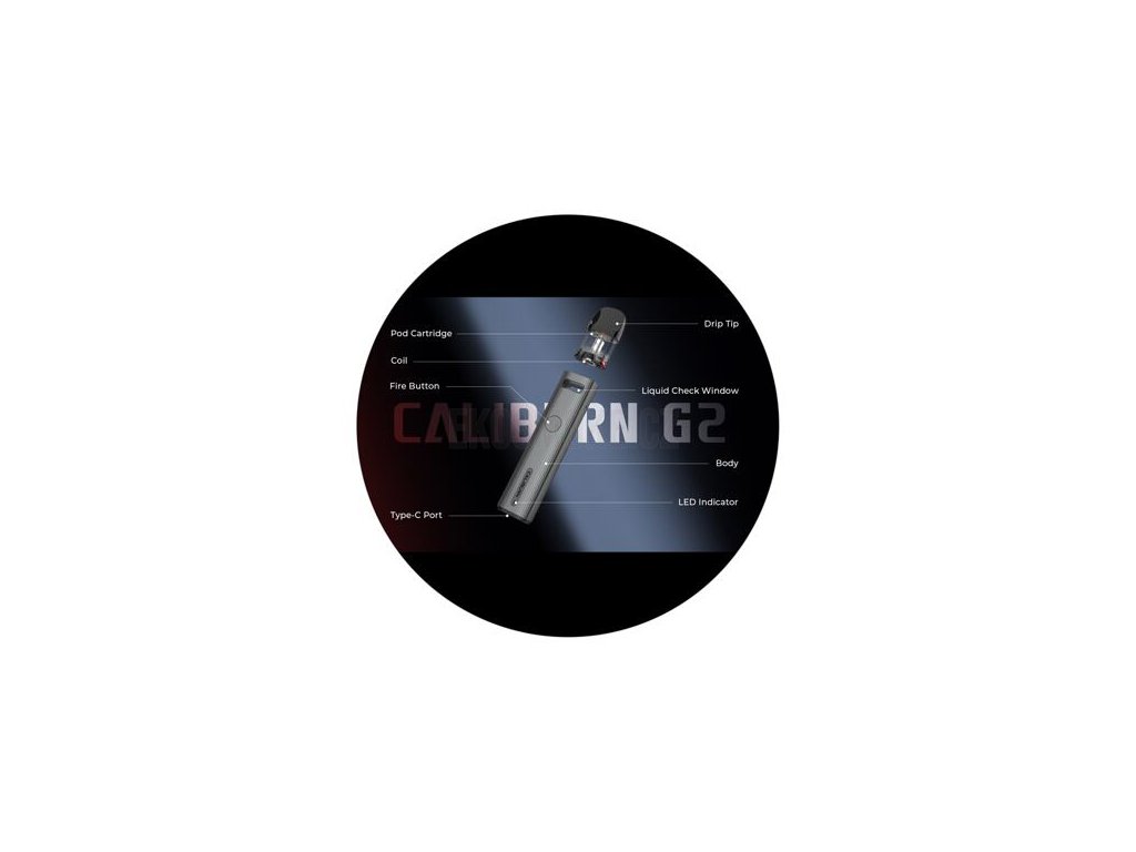 Uwell Caliburn G2 Pod Kit je hrdým nástupcem prvního modelu Caliburn G od výrobce Uwell. Nabídne několik skvělých vylepšení pro ještě snazší každodenní využití a zároveň přináší stylový design a ergonomickou konstrukci s celou řadou barevných zpracování. Celé tělo je vyrobeno z lehké hliníkové slitiny, celková hmotnost e-cigarety činí jen 36 g, v ruce ji tak proto ani neucítíte a můžete si ji také snadno vzít kamkoliv s sebou. Rozměry činí jen 110,5 x 22,5 x 13 mm. Ve vrchní části se nachází ergonomicky tvarovaný náustek cartridge pro co nejpříjemnější potahování. V těle se nachází integrovaná baterie s kapacitou 750 mAh pro dlouhé hodiny nerušeného vapování. V případě potřeby ji budete moci kdykoliv efektivně rychle dobít pomocí portu USB-C. Samozřejmostí je také možnost volby samotného žhavení. Můžete volit mezi automatickým spínáním žhavení a mezi použitím manuálního spínacího tlačítka pro žhavení.