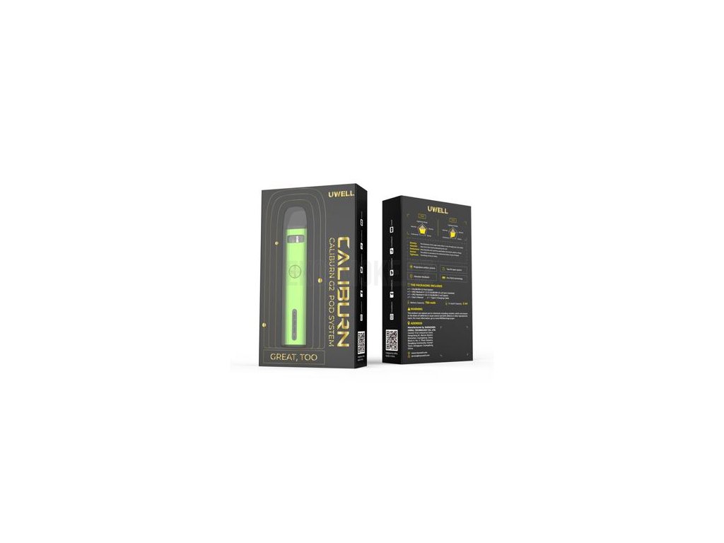 Novinkou je přítomnost unikátního bezpečnostního prvku. Zařízení disponuje haptickou vibrační odezvou, která vás v případě závady informuje mírným zavibrováním. Tato vibrace se projeví například v případě zkratu, nebo při nízkém napětí baterie, případně při překročení limitu pro jeden potah. Budete tak mít rychlý přehled o tom, co se se zařízením právě děje. Cartridge ve vrchní části je vyráběna s technologií Pro-FOCS, která klade důraz na maximálně věrné a bohaté podání chuti. Cartridge disponuje objemem 2 ml a nabídne jednoduchý systém vrchního plnění pouhým sejmutím náustku. Je kompatibilní s tělísky UN2 Meshed-H, přičemž v základním balení na vás čekají dvě tělíska s mesh pletivem a odpory 0,8 ohm a 1,2 ohm. Nabídnou skvělý výběr mezi utaženým MTL potahem a vzdušnějším MTL potahem připomínajícím RDL. Uwell Caliburn G2 Pod Kit je všestranné zařízení, jehož jednoduchost a praktičnost vás ohromí.