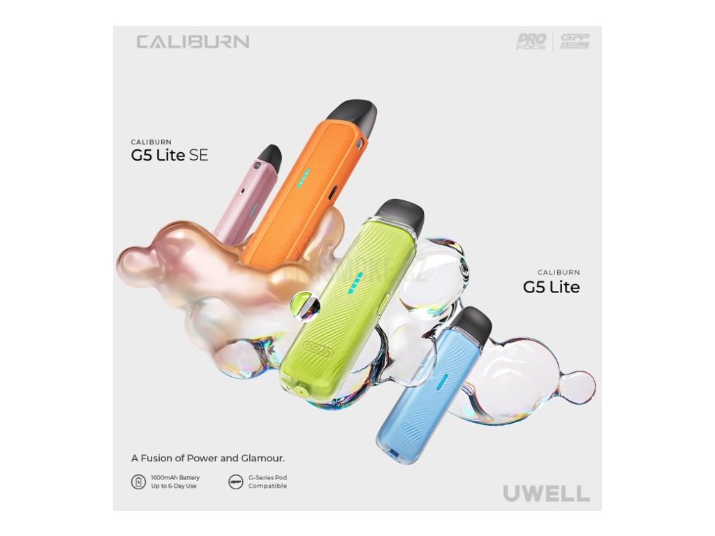 Caliburn G5 Lite SE od značky Uwell kombinuje prémiové materiály, moderní design a dlouhou výdrž v kompaktním těle vhodném pro každodenní provoz. Konstrukce z PC materiálu doplněná o kožený povrch zajišťuje příjemný úchop, odolnost a zároveň nízkou hmotnost, což z přístroje dělá praktickou volbu do kapsy i batohu. Integrovaná vysokokapacitní baterie 1600mAh poskytuje stabilní výkon až 35W a umožňuje několikadenní používání bez nutnosti častého dobíjení. Technologie PRO-FOCS 4.0 zajišťuje čisté podání chuti, optimalizovaný přenos výkonu a delší životnost cartridge, což je klíčové zejména z pohledu dlouhodobé spokojenosti uživatelů. Zařízení je vybaveno duálním systémem regulace airflow – jemné doladění tahu je možné jak posuvným ovladačem, tak otočením cartridge. Díky tomu lze snadno přepínat mezi utaženým MTL a volnějším RDL stylem vapování bez nutnosti výměny komponentů. Přehledný 4-Bar Gradient LED indikátor reaguje na potah a současně informuje o stavu baterie v reálném čase. Součástí balení je cartridge Caliburn GPP s odporem 0.6Ω a bočním plněním o objemu 2ml, navržená pro plynulý chod, minimální riziko protékání a konzistentní výkon při každodenním používání. Zařízení je plně kompatibilní s celou řadou cartridgí Caliburn GPP, což zvyšuje flexibilitu nabídky na prodejně.