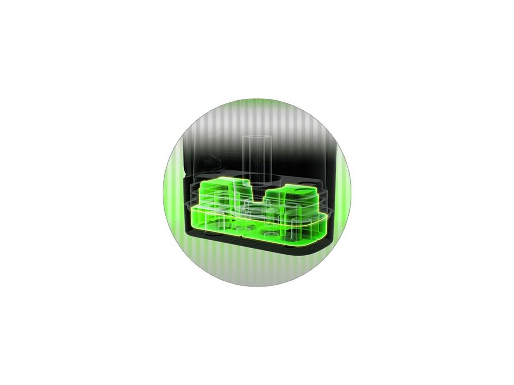 Cartridge můžete na tělo baterie nasadit jedním ze dvou směrů. Každý směr potom nabídne odlišnou tuhost potahu díky duálnímu systému airflow. Nic není potřeba nastavovat, jednoduše vyjmete cartridge a nasadíte ji druhou stranou, rázem získáte volnější, nebo utaženější potah podle toho, jak jste cartridge otočili.