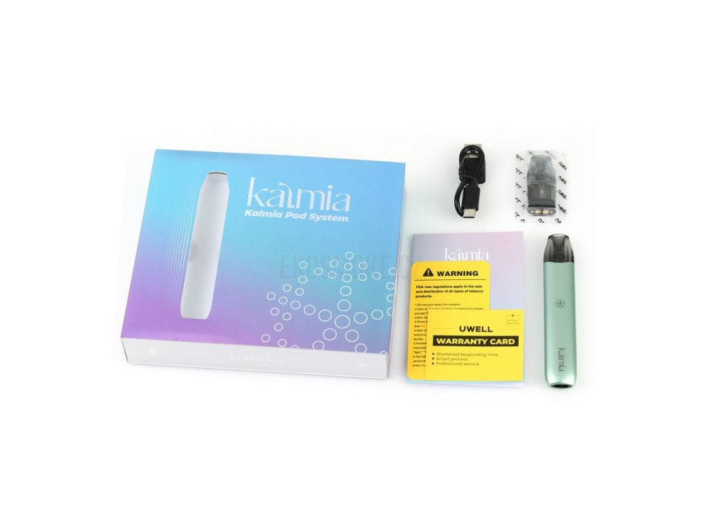 Uwell KALMIA je decentní a designová elektronická cigareta s POD systémem, a díky jemnému zúžení špičky cartridge se dokonale přizpůsobí rtům uživatele. Elegantní baterie je vyrobena z lehké hliníkové slitiny a disponuje vestavěnou baterií o kapacitě 400mAh s výkonem až 13W, vibrační signalizací pro nabití baterie, automatickým spínačem a moderním USB-C portem pro rychlé nabití. Vyměnitelná cartridge (POD) se žhavící hlavou o odporu 1,2ohm pojme až 1,6ml liquidu. Baterie disponuje ochranou proti zkratu, přehřátí a podbití. Tato inovace je vhodná pro kouření ve stylu MTL, tedy klasického šlukování pusa-plíce.