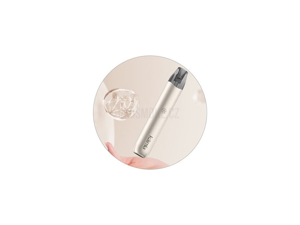 S elegantní elektronickou cigaretou typu pod vhodnou zejména do společnosti a pro zvláštní příležitosti přichází výrobce Uwell. Nový Uwell Kalmia Pod Kit však dokáže zaujmout nejen svým vzhledem, ale také praktickými a oblíbenými funkcemi, které značně usnadní celkové používání e-cigarety. Jednoduchá elektronická cigareta nabídne populární prvky, jako je funkce automatického spínání potahu, podpora náplní s nikotinovou solí, nebo odlehčená konstrukce těla. To je vyrobeno z kombinace kovových slitin s dominujícím hliníkem. Celková hmotnost e-cigarety činí 24,5 g, v ruce ji během potahu ani neucítíte. Rozměry těla činí 20 x 10,8 x 109 mm. Ve vrchní části se nachází cartridge s objemem 1,6 ml a ergonomicky tvarovaným náustkem pro co nejkomfortnější držení v ústech. Uvnitř cartridge najdete integrované žhavící tělísko s odporem 1,2 ohm v provedení FeCrAl UN2 Meshed-H pro perfektní náběh žhavení a vynikající chuť.