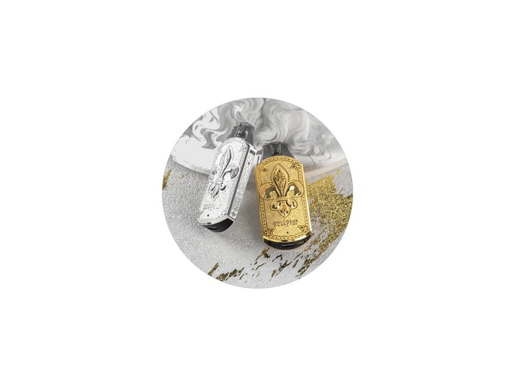 Uwell Sculptor Pod Kit je elegantní a nádherná e-cigareta, která se pyšní kovovou konstrukcí z kombinace zinkové slitiny, mědi a dalších materiálů. Její panel potom zdobí nádherná rytina v podobě Fleur de lis, heraldický znak lilie. Model Sculptor je geniální ukázkou pečlivého vývoje a vytříbeného vkusu designérů ze společnosti Uwell.