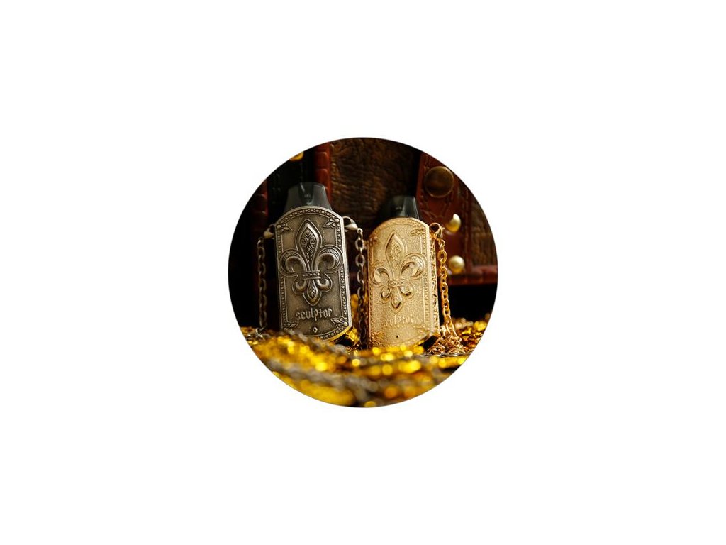 Uwell Sculptor Pod Kit je elegantní a nádherná e-cigareta, která se pyšní kovovou konstrukcí z kombinace zinkové slitiny, mědi a dalších materiálů. Její panel potom zdobí nádherná rytina v podobě Fleur de lis, heraldický znak lilie. Model Sculptor je geniální ukázkou pečlivého vývoje a vytříbeného vkusu designérů ze společnosti Uwell.