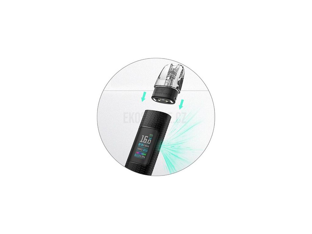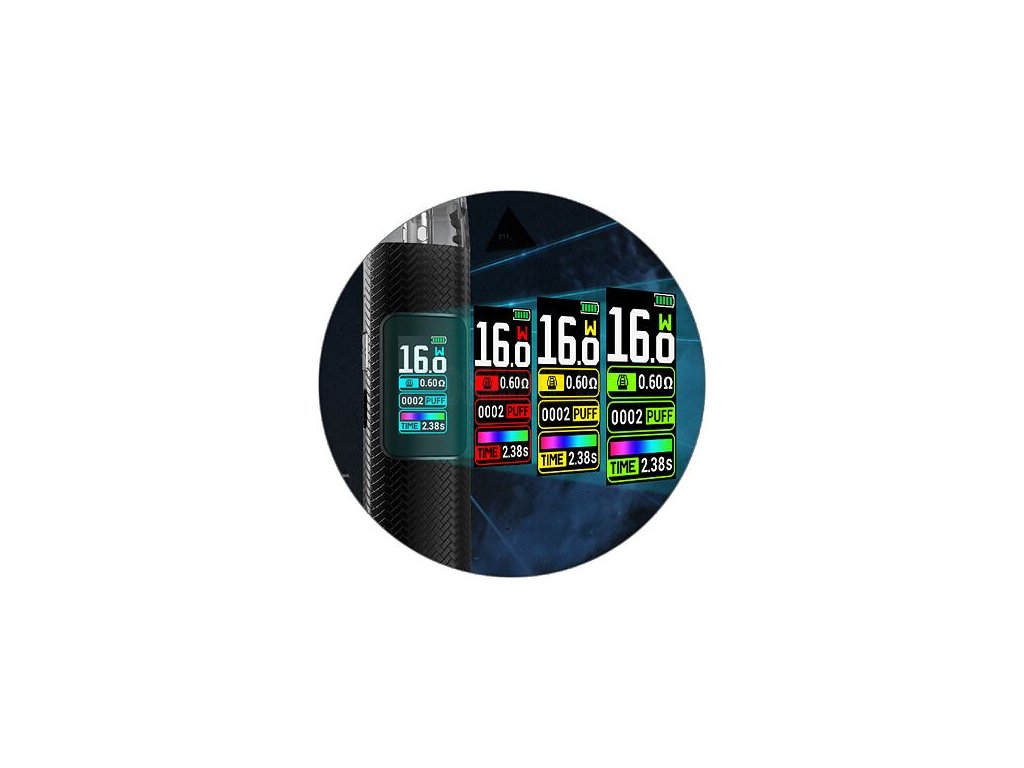 Hlavní výsadou zařízení je barevný TFT displej na předním panelu. Ten vás neustále informuje o stavu baterie, nastaveném výkonu, počtu potahů, odporu cartridge a čase posledního potahu. Díky barevnému rozhraní je nastavení jednodušší, než kdykoliv předtím.