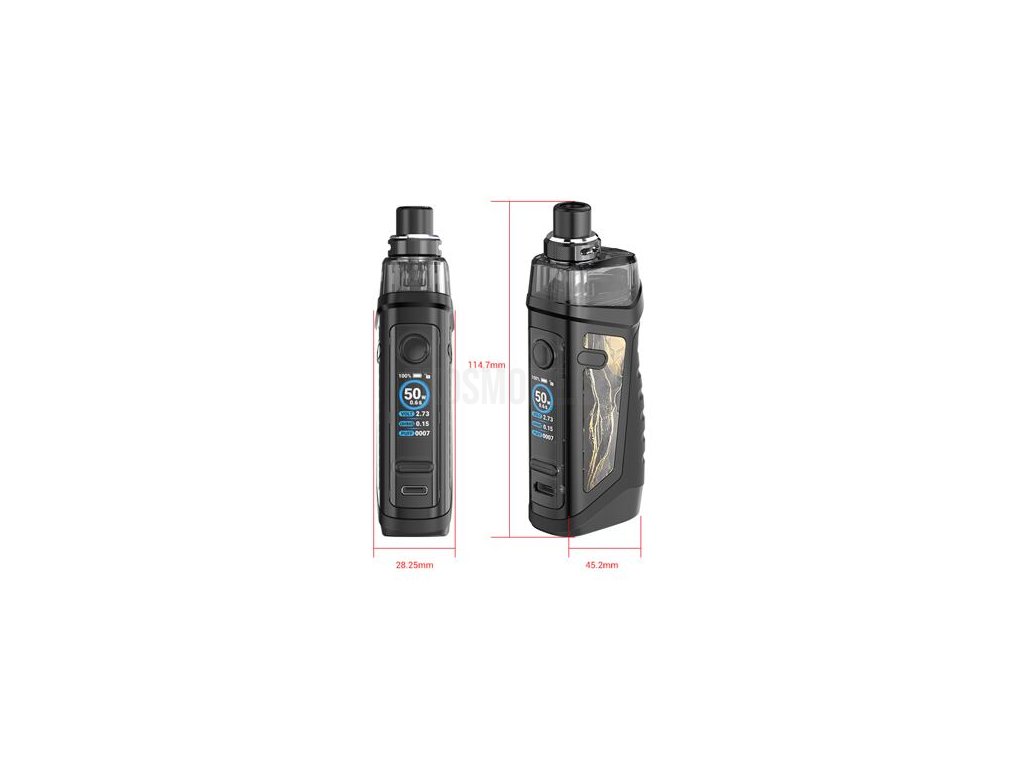 Výrobce se designem inspiroval u rukojetí zbraní, zařízení tak přináší opravdu komfortní stisk a perfektní ergonomii, díky čemuž si budete užívat vaping naprosto bez problému kdykoliv během dne. Zadní část je příjemně zaoblená a celá e-cigareta skvěle padne do dlaně. Nabídne také praktické rozměry těla pro snadné uskladnění a přenášení.