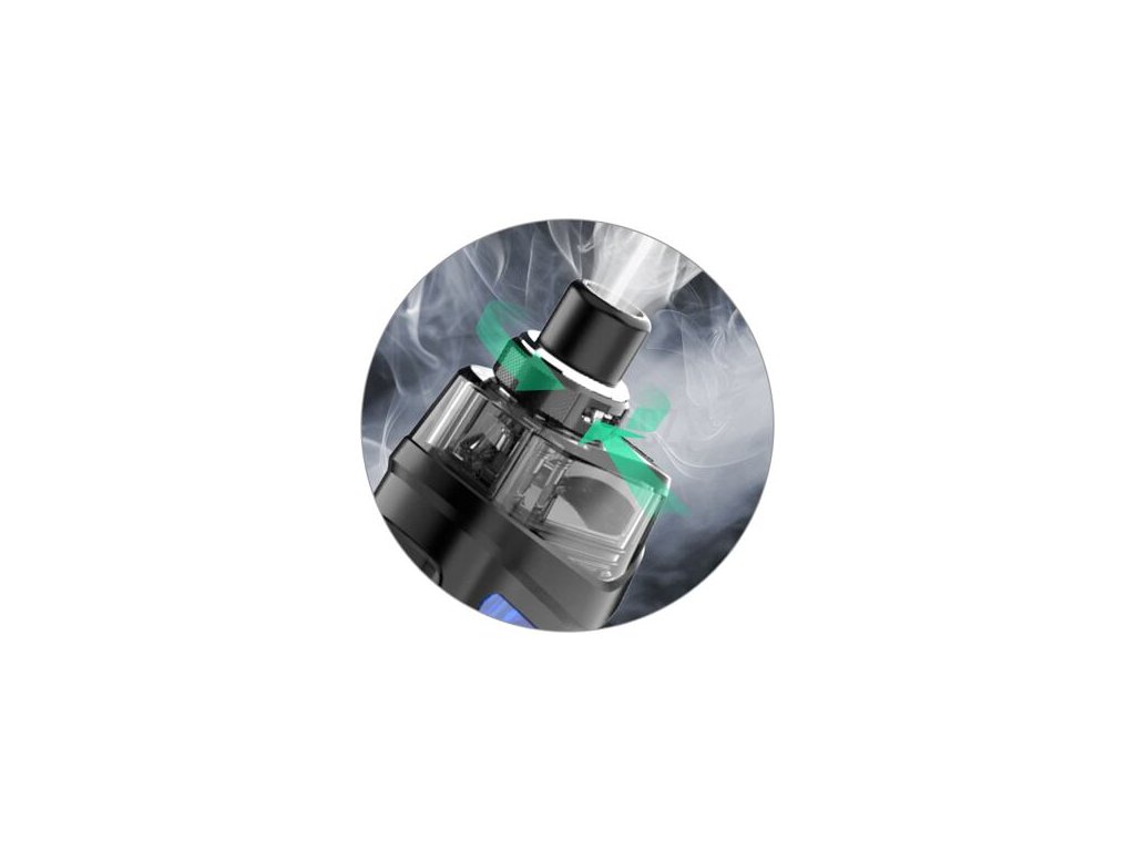 Cartridge ve vrchní části zařízení nabídne obrovský objem 4,7 ml. Díky této velké kapacitě zvládne také intenzivnější vaping s vyšším výstupním výkonem. V případě potřeby doplnění e-liquidu pak nemusíte cartridge ani odpojovat z těla. Jednoduše odklopíte silikonovou záslepku ve vrchní části a během pár vteřin máte hotovo.