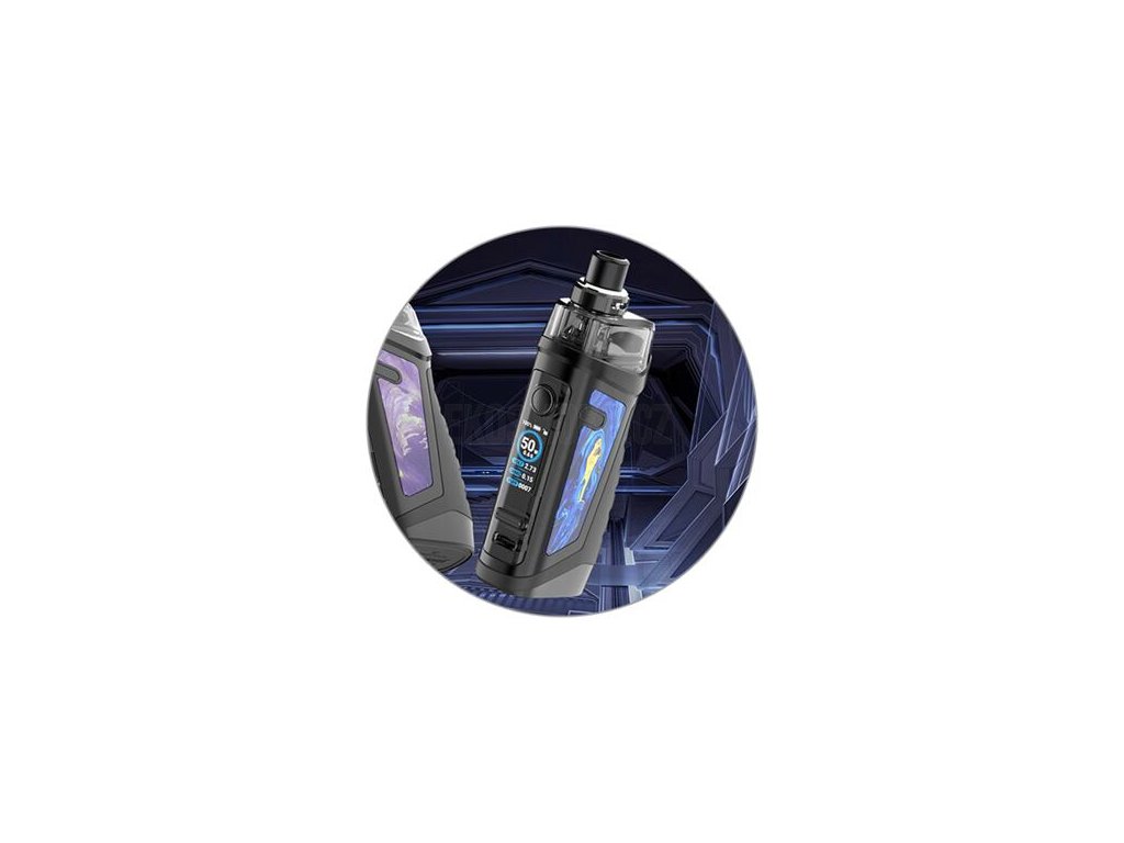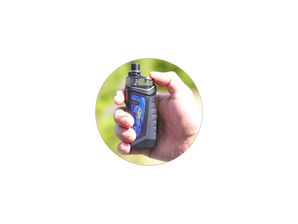 Výrobce se designem inspiroval u rukojetí zbraní, zařízení tak přináší opravdu komfortní stisk a perfektní ergonomii, díky čemuž si budete užívat vaping naprosto bez problému kdykoliv během dne. Zadní část je příjemně zaoblená a celá e-cigareta skvěle padne do dlaně. Nabídne také praktické rozměry těla pro snadné uskladnění a přenášení.