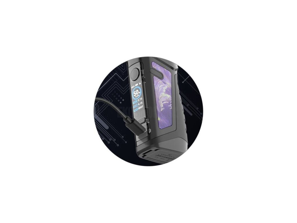 Díky slotu pro vlastní externí baterii a prvotřídní elektronice v těle se můžete těšit na strhující výstupní výkon, jenž dosahuje až 70 W. Výkon lze pohodlně regulovat prostřednictvím regulačních tlačítek v celkovém rozpětí 5 - 70 W, umožňuje tak snadnou volbu požadovaného výstupního výkonu pro všechny typy vapingu.