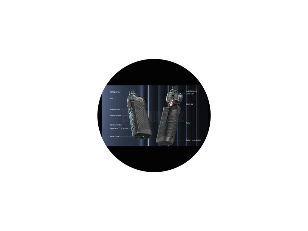 Výrobce se designem inspiroval u rukojetí zbraní, zařízení tak přináší opravdu komfortní stisk a perfektní ergonomii, díky čemuž si budete užívat vaping naprosto bez problému kdykoliv během dne. Zadní část je příjemně zaoblená a celá e-cigareta skvěle padne do dlaně. Nabídne také praktické rozměry těla pro snadné uskladnění a přenášení.