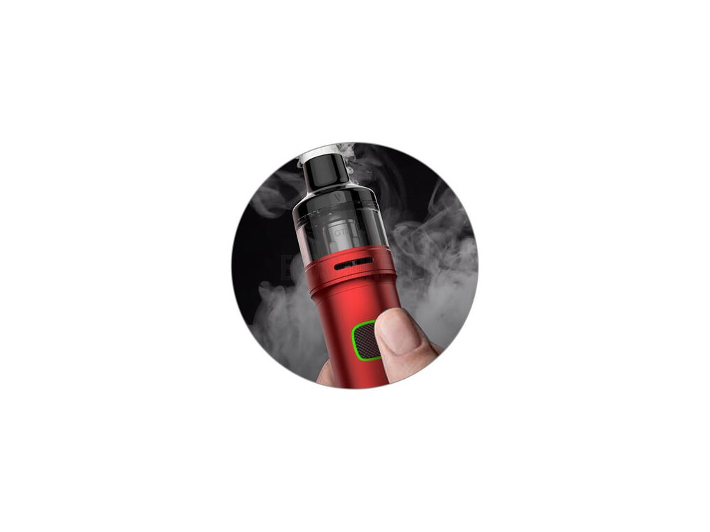 Ve vrchní části se nachází cartridge Vaporesso GTX POD 22. Tato cartridge nabídne objem 3,5 ml a praktický systém vrchního plnění, kdy stačí jen pootočit náustkem a začít plnit. Cartridge nabídne také spodní regulaci airflow a přepracovanou konstrukci, která eliminuje možný únik e-liquidu a značně omezuje vznik kondenzátu během používání.