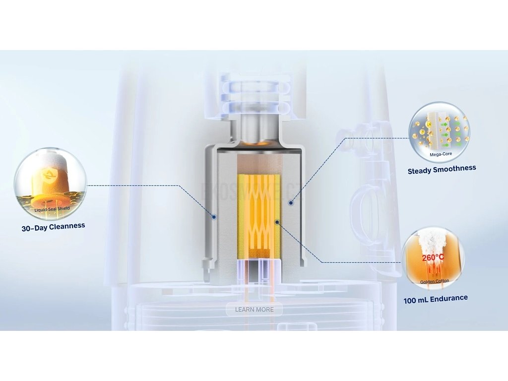 Adaptivní výkonPokročilá technologie adaptivního nastavení automaticky upravuje výkon v rozsahu 5-30W podle typu použitého podu a intenzity potahu. Inteligentní čip vyhodnocuje odpor spirálky a sílu potahu v reálném čase, čímž zajišťuje konzistentní a optimální vapovací výkon bez manuálního nastavování. |