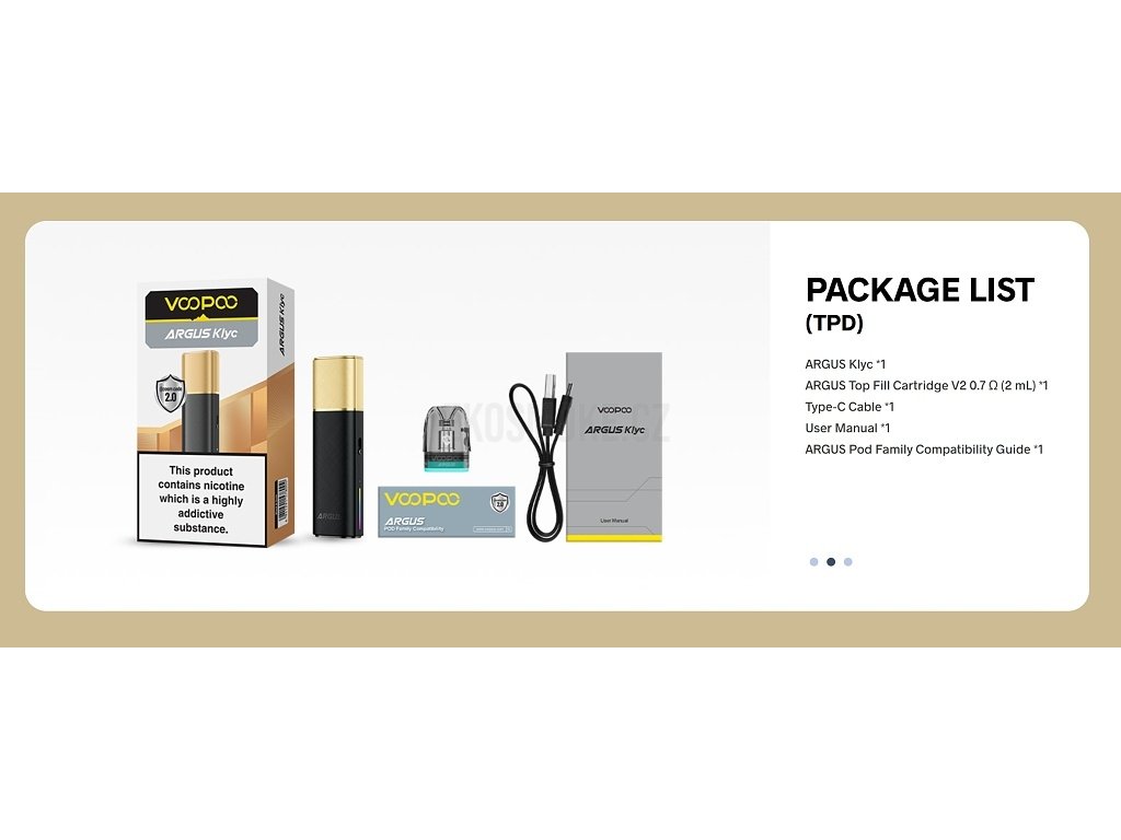 - 1x VOOPOO Argus Klyc tělo s baterií 1350mAh