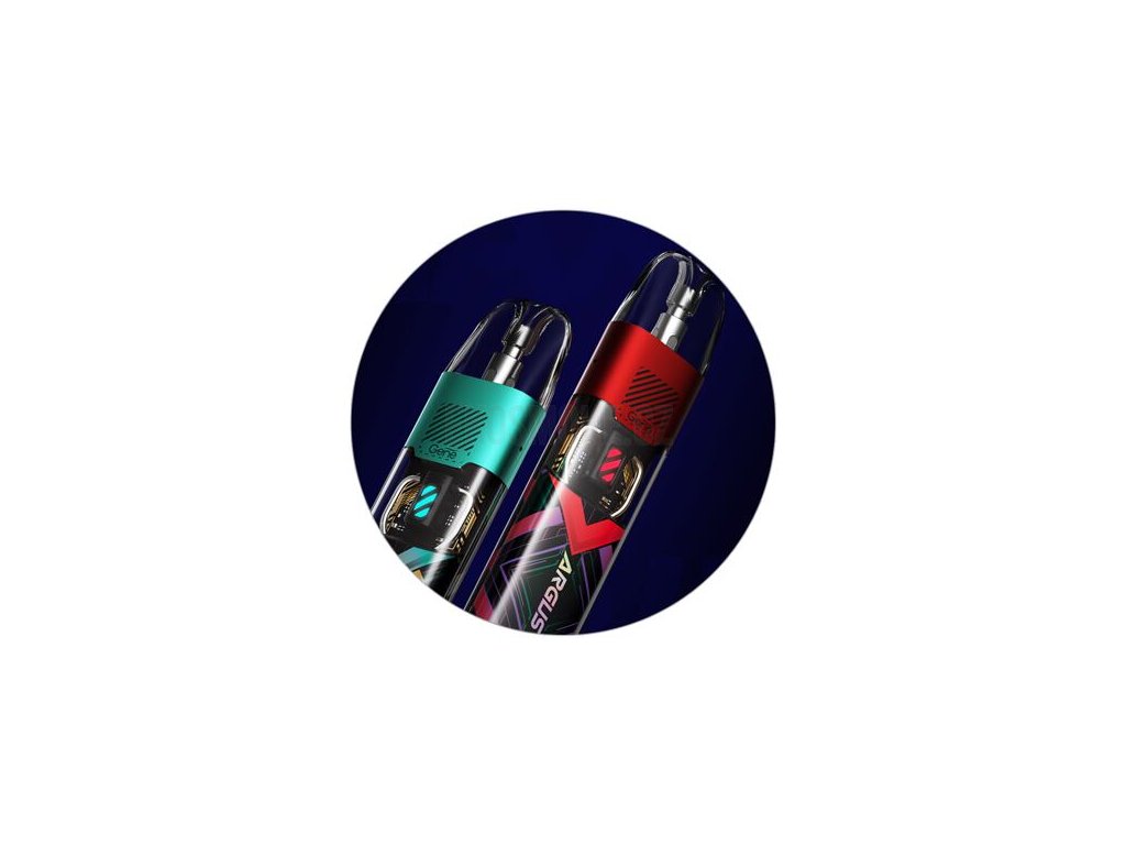 Společně s tělem e-cigarety najdete v balení také dvě cartridge ze série Argus Pod. Obě nabídnou objem 2 ml, pohodlné boční plnění, ergonomicky tvarovaný náustek a integrovanou žhavící hlavu pro perfektní výsledky při žhavení. První cartridge disponuje odporem 0,7 ohm a je vhodná pro volnější MTL potah, druhá nabídne odpor 1,2 ohm a je ideální pro utaženější formu klasického šlukování.