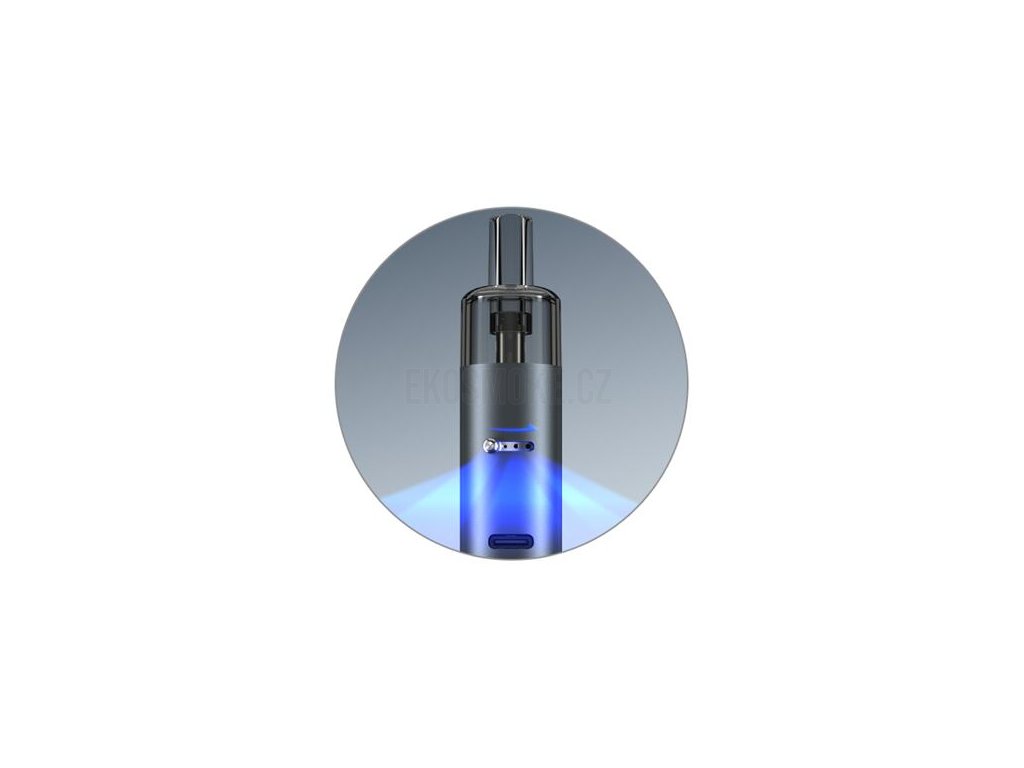 V přední části se nachází spínací tlačítko, které slouží pro zapnutí a vypnutí e-cigarety, ale pomocí kterého také můžete spínat samotné žhavení. E-cigareta však zároveň podporuje funkci automatického spínání žhavení pouhým potažením z náustku. Máte tedy na výběr mezi dvěma variantami sepnutí a sami si můžete zvolit, která vám bude vyhovovat lépe.