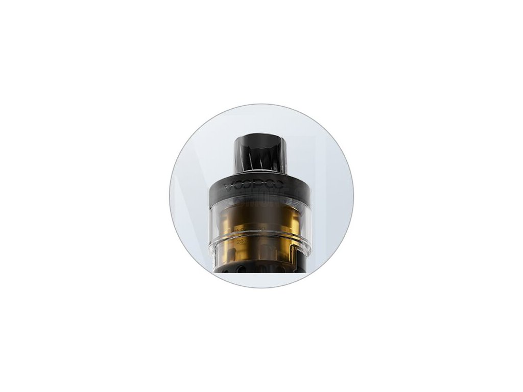 Cartridge VooPoo PnP Pod II ve vrchní části se pyšní obrovským objemem. Do cartridge lze doplnit až 5 ml e-liquidu, díky této velké kapacitě tak nabídne dlouhou výdrž na jedno naplnění i v případě intenzivnějšího DL potahování. V případě potřeby navíc můžete cartridge kdykoliv odpojit a doplnit ji prostřednictvím spodního systému plnění.