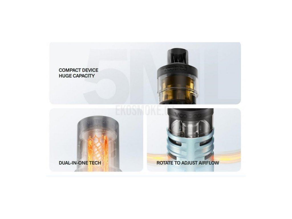Není určeno pro náplně obsahující nikotin! Grip DRAG H40 je nejmenší zařízení od VOOPOO na úrovni POD MODu, jehož maximální výkon 40W umožňuje uživatelům zahájit DTL prožitek z vapingu (Direct-to-lung). Kapacita upgradové cartridge PnP Pod II je 5ml a společně s vestavěným monočlánkem 1500mAh zbaví uživatele starostí s častým doplňováním liquidu a nabíjením baterie. Nastavitelný výkon až 40W a 360° airflow (proudění vzduchu k cívce) pomůže vyladit uživateli do sebemenšího detailu optimální chuť liquidu... více info v detailním popisu