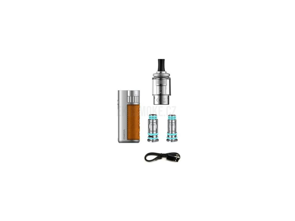 Materiál: zinková slitina + kůže + silikon (tělo e-cigarety); nerezová ocel + PCTG (cartridge)