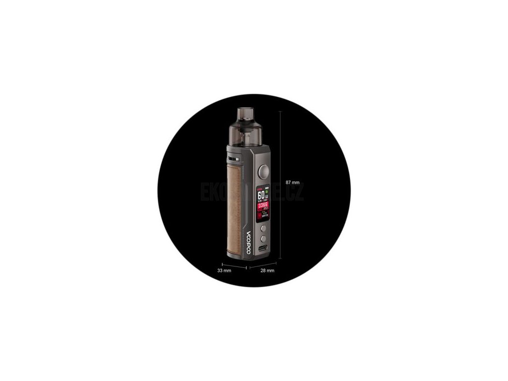 VooPoo Drag S Pod Kit je nová elektronická cigareta výrobce VooPoo. Tentokrát se zaměřuje na všechny typy vaperů a přináší řadu jedinečných funkcí pro snadné používání a jednoduchou obsluhu. Drag S Pod Kit přichází s krásným designem. Celé tělo je vyrobeno z kombinace zinkové slitiny a kůže, která se nachází na zadním panelu. K dispozici je také celá řada barevných provedení. Rozměry zařízení činí jen 87 x 33 x 28 mm, skvěle padne do každé ruky a pohodlně se také přenáší. V jádru zařízení se nachází prvotřídní čip GENE.TT, který nabídne okamžitý náběh žhavení, řadu bezpečnostních prvků, přehledné uživatelské rozhraní a možnost regulace výstupního výkonu v rozmezí 5 - 60 W. Díky čipu se můžete těšit také na dvě varianty potahu - automatické spínání potažením z náustku, nebo na manuální spínání pomocí tlačítka. Výběr je čistě na vás.