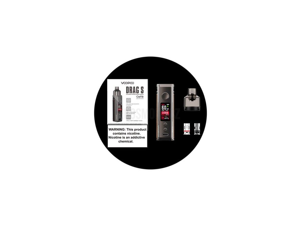 VooPoo Drag S Pod Kit je nová elektronická cigareta výrobce VooPoo. Tentokrát se zaměřuje na všechny typy vaperů a přináší řadu jedinečných funkcí pro snadné používání a jednoduchou obsluhu. Drag S Pod Kit přichází s krásným designem. Celé tělo je vyrobeno z kombinace zinkové slitiny a kůže, která se nachází na zadním panelu. K dispozici je také celá řada barevných provedení. Rozměry zařízení činí jen 87 x 33 x 28 mm, skvěle padne do každé ruky a pohodlně se také přenáší. V jádru zařízení se nachází prvotřídní čip GENE.TT, který nabídne okamžitý náběh žhavení, řadu bezpečnostních prvků, přehledné uživatelské rozhraní a možnost regulace výstupního výkonu v rozmezí 5 - 60 W. Díky čipu se můžete těšit také na dvě varianty potahu - automatické spínání potažením z náustku, nebo na manuální spínání pomocí tlačítka. Výběr je čistě na vás.