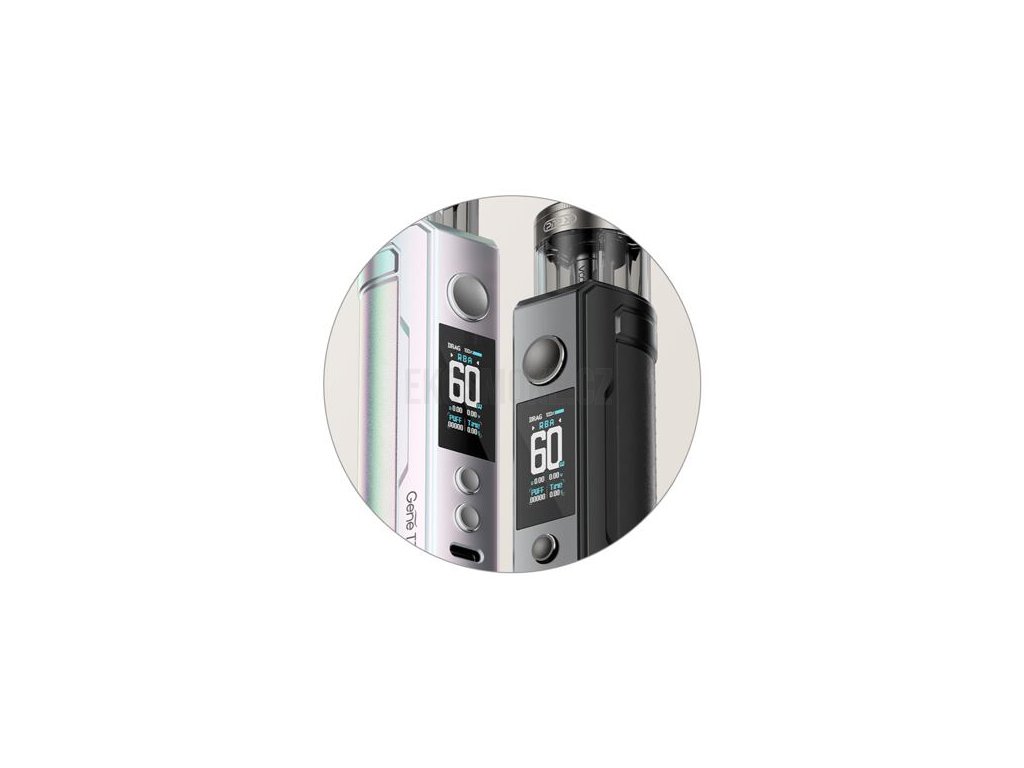 V jádru e-cigarety se nachází upgradovaný čipset Gene.TT 2.0, který nabídne perfektní výsledky při používání a přehledné uživatelské rozhraní. Všechny potřebné funkce ovládáte pomocí panelu v přední části, který tvoří ovládací tlačítka a velký barevný displej. E-cigareta pracuje hned se třemi výstupními režimy, pro příznivce jednoduchého provozu je připraven režim SMART, který nastaví výkon automaticky za vás a zároveň omezí rozsah regulovaného výkonu, aby nedošlo k poškození hlavy. Pro pokročilejší uživatele je připraven režim RBA pro vlastní regulaci výkonu v libovolném rozpětí mezi 5 - 60 W a nový režim ECO, který prodlouží životnost vaší baterie. Ve spojení s novým typem cartridge PnP-X s objemem 5 ml a novými hlavami PnP-X se jedná o vynikající DL zařízení pro náročné, které ocení také naprostí začátečníci.
