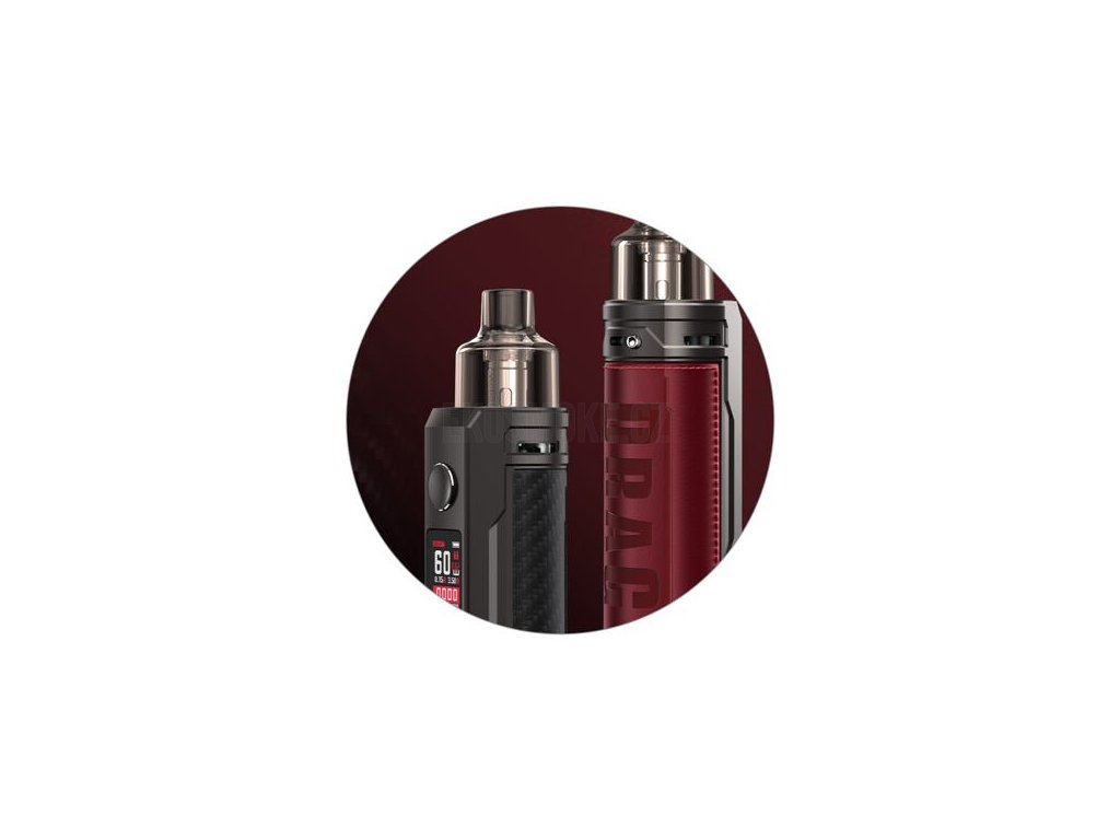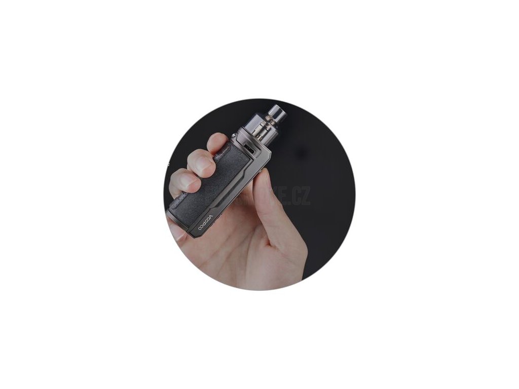 Výrobce VooPoo představuje upgradovanou verzi nového modelu Drag S a přináší uživatelům nabídku ještě vyššího výstupního výkonu a výhodu v používání vlastní externí baterie. VooPoo Drag X Pod Kit je špičková elektronická cigareta, která osloví zejména příznivce přímého potahování do plic, bez problému však potěší také milovníky vzdušnějšího MTL potahu. Rozměry e-cigarety Drag X činí 95 x 32,5 x 28 mm a díky svému ergonomickému zpracování skvěle padne do každé ruky. Tělo je vyrobeno z kombinace zinkové slitiny a kůže, kterou najdete na zadním panelu. Uvnitř modelu Drag X se nachází prvotřídní čip GENE.TT který nabídne okamžitý náběh žhavení, řadu bezpečnostních prvků, přehledné uživatelské rozhraní a možnost regulace výstupního výkonu v rozmezí 5 - 80 W. VooPoo Drag X Pod přináší jednoduchou metodu spínaní žhavení stiskem žhavícího tlačítka.