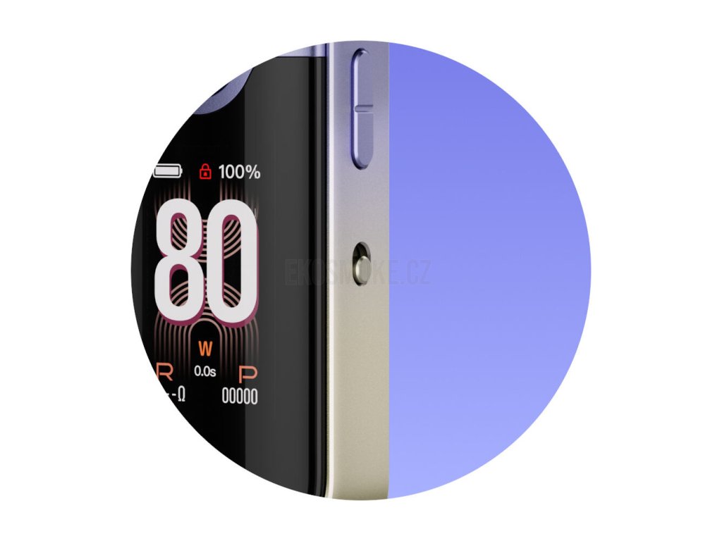 Displej je jednoznačnou dominantou a chloubou této elektronické cigarety, neboť disponuje úhlopříčkou 1,47 palce, jemným rozlišením a jasnými barvami. V aktuálním čase zobrazuje výkon, odpor, stav baterie, délku posledního potahu a celkový počet potahů. Všechny potřebné informace tak máte neustále na očích.