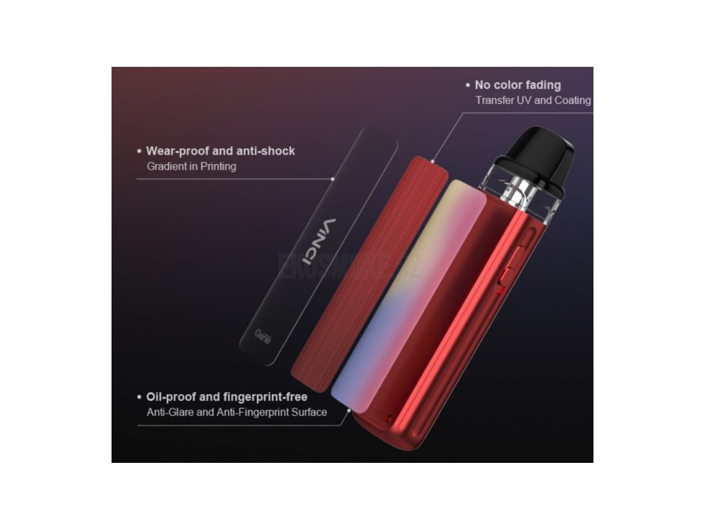 Trefa do černého! VOOPOO představuje elektronickou cigaretu VINCI Pod s dokonalými kompaktními tvary, skvělou kouřivostí a autentickou chutí liquidu. Ergonomické tělo ze slitiny zinku a s designovým panelem obsahuje integrovanou baterii o kapacitě 800mAh se stylovým LED indikátorem stavu nabití (viz obrázek), automatickým spínačem a výkonem až 15W. USB-C port zajistí rychlé nabití baterie. Vyměnitelná cartridge (POD) o objemu 2ml a odporu 0,8ohm disponuje pohodlným bočním plněním. Regulace přívodu vzduchu pro nastavení optimální kouřivosti se nachází na boční straně těla baterie.