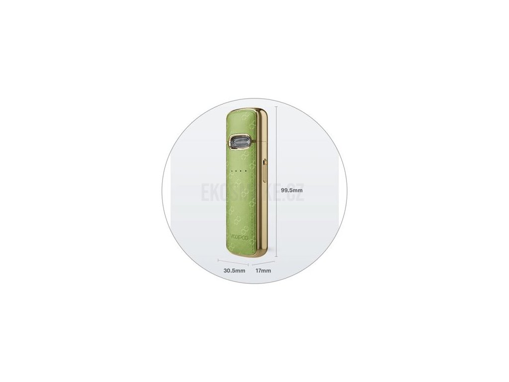 VooPoo VMATE E Pod Kit je nádherně zpracovaná a stylová e-cigareta, která přichází na scénu hned v šesti barvách. Tělo je vyrobeno z kombinace zinkové slitiny a kůže, na výběr budete mít ze tří konvenčních barev s šedou konstrukcí, nebo tři moderní a luxusní barvy s pozlacenou konstrukcí. Rozměry e-cigarety činí krásných 99,5 x 30,5 x 17 mm, díky čemuž se bude příjemně držet v ruce při každodenním používání.
